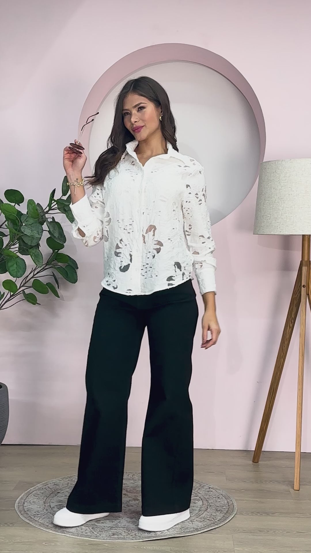 Una camisa que te hace ver moderna, segura y totalmente femenina. Sencilla. Con actitud. Camisa manga larga confeccionada en 75% viscosa y 25% nailon. Tejido suave, con caída fluida y tacto ligero. Líneas limpias, cuello clásico y cierre frontal discreto. Puños que permiten remangar y un corte favorecedor que acompaña la silueta sin apretar. Ideal para la oficina, una tarde de café o una cena casual. Realza tus hombros y crea una cintura sutil. Te da ese equilibrio entre pulcritud y frescura. Te sientes impecable y auténtica. Una prenda versátil que refleja tu estilo y te hace destacar con confianza. Descúbrela en la colección y hazla tuya. Añádela al carrito y renueva tu forma de vestir.