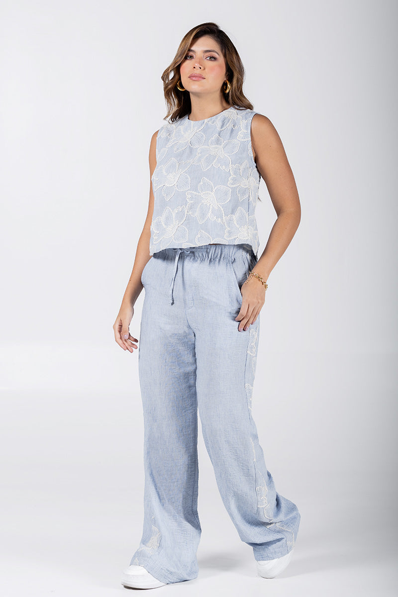 Set Pantalón 2 Piezas Sofisticado Cintura Alta Marca Trucco´s